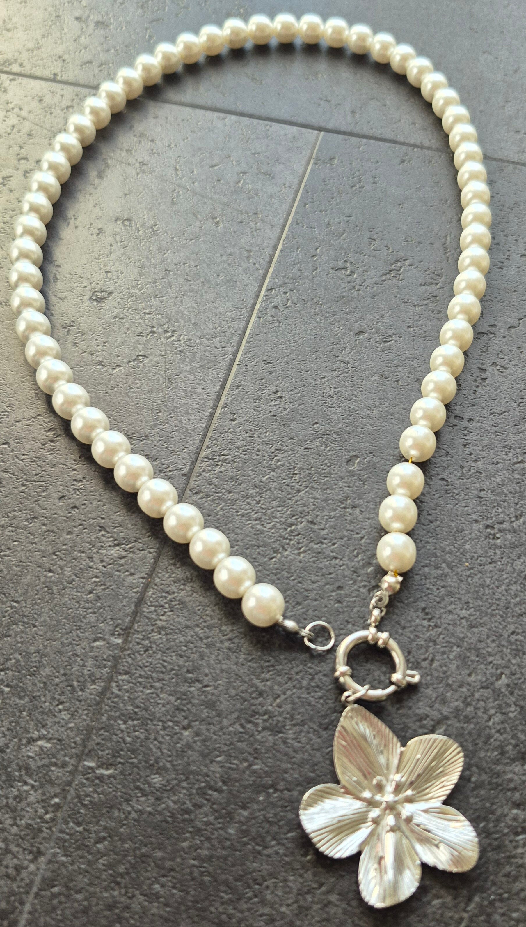 parelketting zilver met bloem